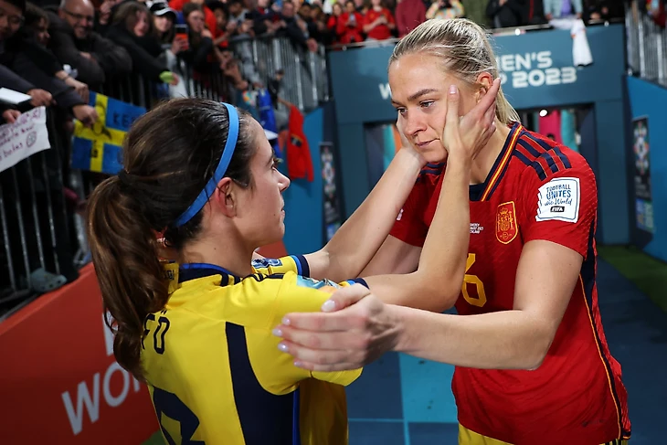 Испанок вовсе не испугали шведки, выигравшие все матчи в группы и выбившие по ходу турнира действующих чемпионок, американок. Главную роль в этой встрече сыграли запасные: Сальма Паральюэло снова забила со скамьи, но шведки сравняли усилиями Лины Хуртиг и Ребеки Блумквист. Все ждали дополнительное время, но Ольга Кармона пушечным ударом вывела свою страну в первый финал крупного турнира.