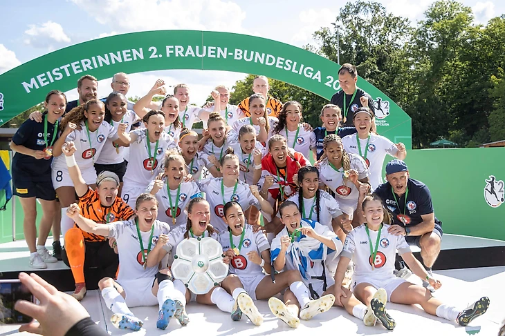 В начале сезона «Потсдам» продолжил свою неудачную серию, начатую ещё в элите (5 поражений кряду), проиграв в первых трёх турах и вылетев из Кубка от дубля «Вольфсбурга». Однако после этого дела наладились, и в 2023-м «турбины» больше не проигрывали и оказались в группе лидеров. Начав 2024-й с двух поражений, «голевые пчёлы» довели дело до конца и взяли титул, набрав 55 очков и вернувшись в Бундеслигу через год после вылета с последнего места.