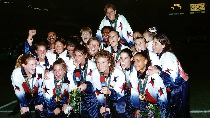 История женского футбольного олимпийского турнира берет свое начало с 1996 года. Тогда на Олимпиаде в Атланте в качестве одной из дисциплин был представлен женский футбол (о включении женского футбола было объявлено 20 сентября 1993-го). 8 сборных были поделены на две группы, обладатели первых и вторых мест выходили в полуфинал. Золотыми медалистками стали хозяйки, в финале обыграв китаянок (2:1), автором победного гола стала Тиффени Милбретт. На тот момент американки имели в своем активе победу на ЧМ-1991.