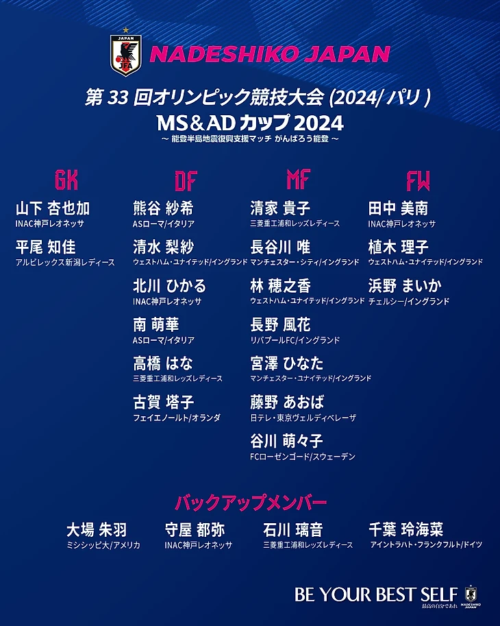 Дзюн Эндо и Хикару Наомото сломались вместе с Хинатой Миядзавой, но так быстро восстановиться не удалось. На турнир решили не брать Саори Такараду, перебравшуюся в «Лестер», а также Хину Сугиту, выходившую в трех матчах на ЧМ.