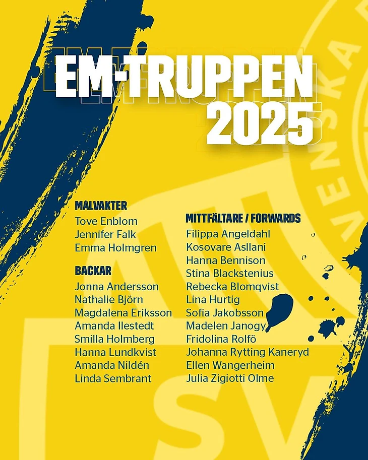 Героиня 1/8 финала ЧМ с США Мушович беременна. Ханна Глас пропустила тот турнир из-за травмы, а через год завязала со сборной. Закончила и Каролин Сегер, она держала рекорд по количеству матчей среди европейских сборных. Без вызова остались Анна Анвегорд, Эмма Кулльберг, Фелисия Шредер и Роза Кафаджи, а также бронзовые призерки мундиаля Элин Рубенссон и Оливия Скуг.