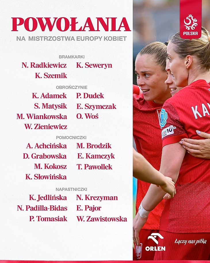 Лучший бомбардир российской Суперлиги-2024 Габриэла Гживиньская не вызывается по политическим причинам – осталась в «Зените», несмотря на уговоры Нины Паталон. Катажина Кеджинек и Эмилия Здунек закончили со сборной. Дошедшая до исторического 4 места с «Дижоном» Малгожата Грец не попала даже в расширенный список, в отличие от Александры Сарембы (к слову, тоже с испанским происхождением) и Оливии Шперковской, принадлежащей «ПСЖ».