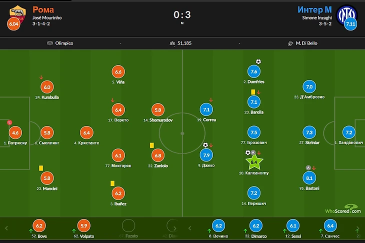 Также "Рома" - "грубая" команда. 50 желтых за круг чемпионата и 3 красных. Больше только у "Сампдории" и "Венеции".