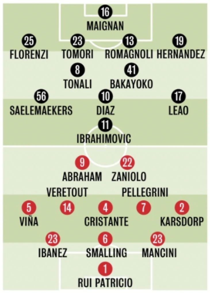 Касаемо составов есть плохая и хорошая новость. Плохая новость- Тэтэрушану и один игрок, имя которого не называют, заразились короновирусом(предположительно это Кастильехо). Позитивнейшим моментом является выздоровление и готовность Ребича, Леао, Ибры к матчу с "Ромой".