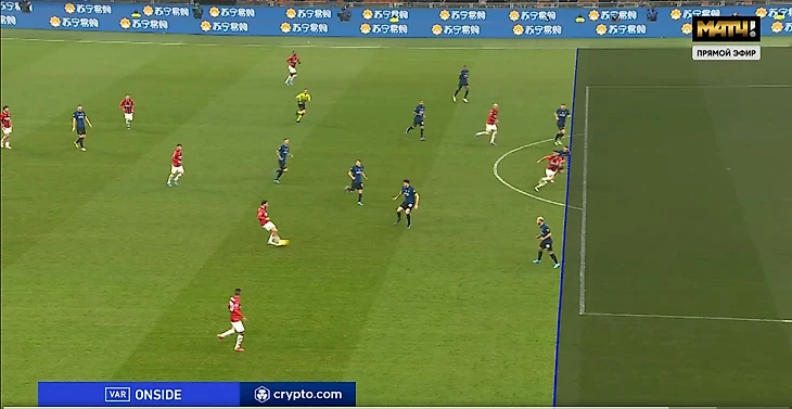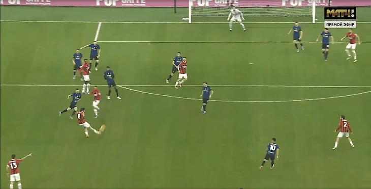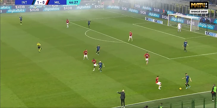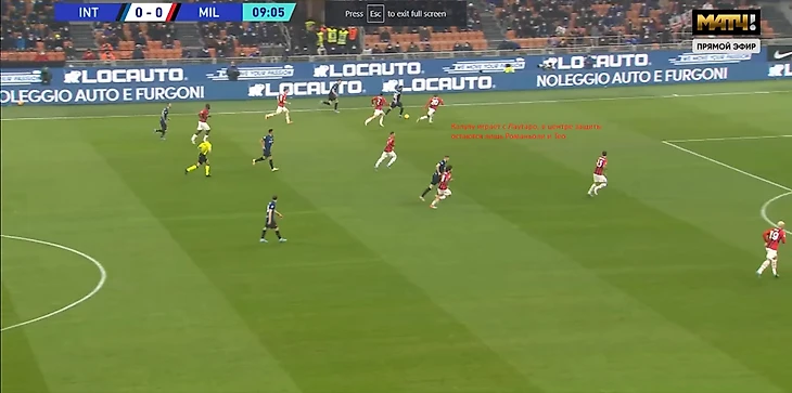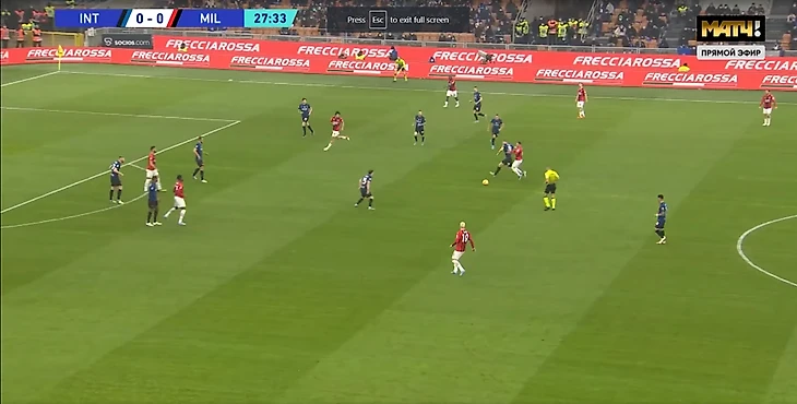 "Россонери", не изменяя себе, активно прессинговали соперника. Происходило зачастую как на скрине: