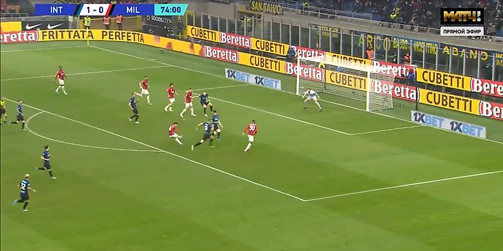 Первый серьезный момент возник на 9 минуте. Хозяева розыгрывали аут, Калабрия выдвинулся на помощь, но с помощью рикошета мяч оказался у Лаутаро.