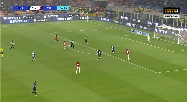 Такой прессинг "Милана" давал шансы на контратаку "Интеру". На 48 минуте хозяева убегали 4 в 5, но вблизи своей штрафной Беннасер сыграл классно в подкате, реабилитировавшись за свой прокол в эпизоде с Дюмфрисом. Да и само желание Симоне Индзаги и команды играть вторым номером было осознанным. "Милан" больше владел мячом, чем в 1 тайме.