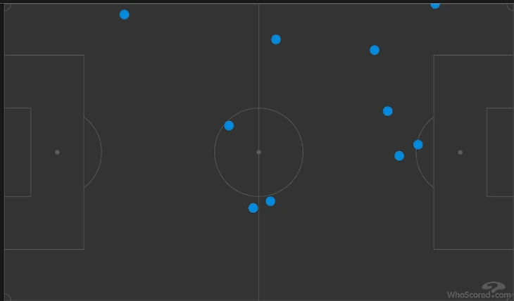 По карте ударов заметно, что большинство своих угроз Аталанта производила из штрафной площади. Лишь три удара из 9 вне прямоугольника было зафиксировано. В свою очередь по воротам Муссо били как из-за штрафной, так и внутри нее. 6 ударов из 11 было нанесено издали.