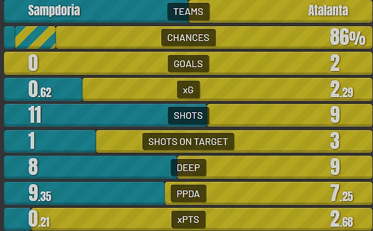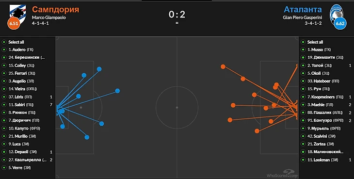Тем не менее моменты у Сампдории были, а удары в штанги, которых насчиталось целых 2 у хозяев, в створ, как известно, не засчитываются. Даже смотря хайлайт матча не было ощущения, что Аталанта на голову сильнее. Просто гости отлично воспользовались своими моментами и победили за счет класса. Кстати, Аталанта показала один из лучших показателей по интенсивности прессинга в 1 туре.