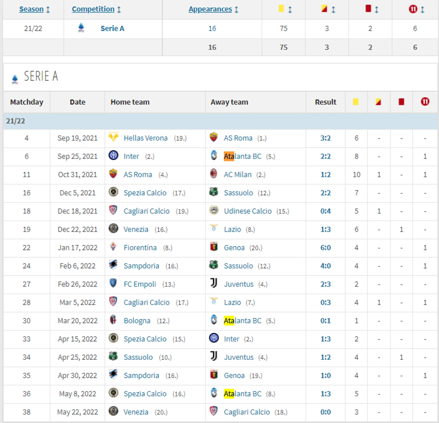 Мареска в сезоне 21\22 лишь раз обслуживал матч с участием "россонери" — против Ромы на выезде. Тогда Милан выиграл 2-1, но удалили Тео за 2 желтые. Матчи Аталанты Мареска обслуживал чаще - трижды. В таких случаях "бергамаски" дважды побеждали — Специю 3-1, Болонью 1-0 и играли вничью с Интером на "Меацца" 2-2. Мареска — строгий рефери и часто достает из кармашка горчичники. Особенно на топ-поединках. И, кстати, в этом сезоне для Марески это будет первый матч.