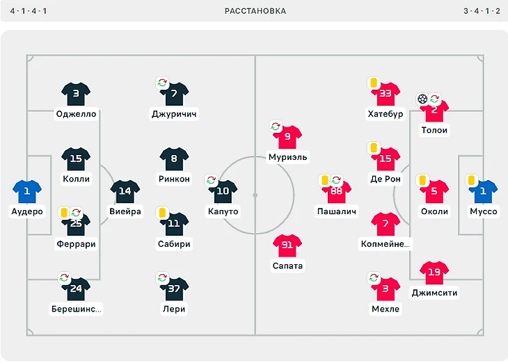 В целом "богини" за лето изменили состав. Пришел Эдерсон из Салернитаны за 21 миллион, пришел Адемола Лукман из Лейпцига за 9 миллионов, который должен стать заменой Мюриэлю, выкупили Бога и Демираля за 22 и 20 миллионов евро. И совсем недавно, на днях, из Удинезе пришел левый вингбэк Соппи, который сыграет уже дважды против Милана в этом сезоне. Цена сделки 9 миллионов евро. Всего за лето "Аталанта" потратила 81 миллион евро(эх, столько бы Милану).