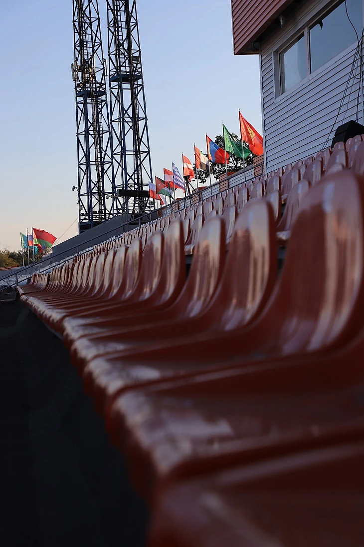 Хорошо, перейдем к самому стадиону. В интернете я наткнулся на прекрасные фотографии вечернего комплекса, сделанные с дрона. Побывав на стадионе лично, я очень удивился, шикарные кресла с символикой «ФК Шахтер», глядя на которые сразу же понимаешь, что можно расслабиться, опустившись на это сиденье, как в ванную. Конечно, если ты футболист или член тренерского штаба. Ну, или условно говоря «заслужил» быть приглашенным на вип-трибуну. Почему-то уверен, что там все на высшем уровне. В остальном же для фанатов все очень даже обычно, пластиковые сидушки, прикрепленные к приваренным между собой металлическим уголкам на голом бетоне.