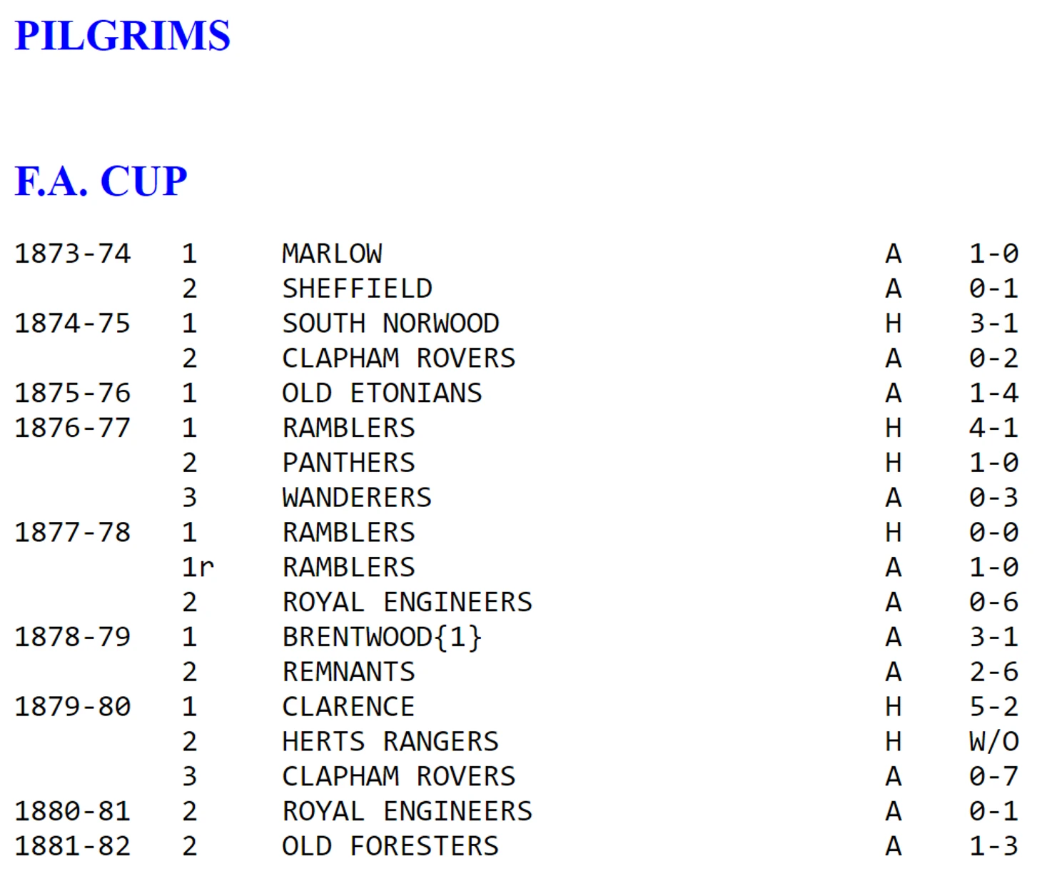 В 1870 году в Англии, еще до создания Футбольной Лиги, появился первый футбольный клуб в память об отцах-пилигримов, взявший название «Клэптон Пилгримс». Своего постоянного места пребывания «пилигримы» не имели, а потому проводили свои матчи в Уолтемстоу и Хакни Доунс – ныне северо-восточные районы Лондона. Благодаря F.C.H.D. мы узнаём, что «пилигримы» участвовали в девяти розыгрышах Кубка Англии с 1873-74 по 1881-82. После чего загадочный клуб исчезает из поля зрения. Информацию об участии в каких-либо других матчах в открытом доступе найти, скорее всего, не удастся.