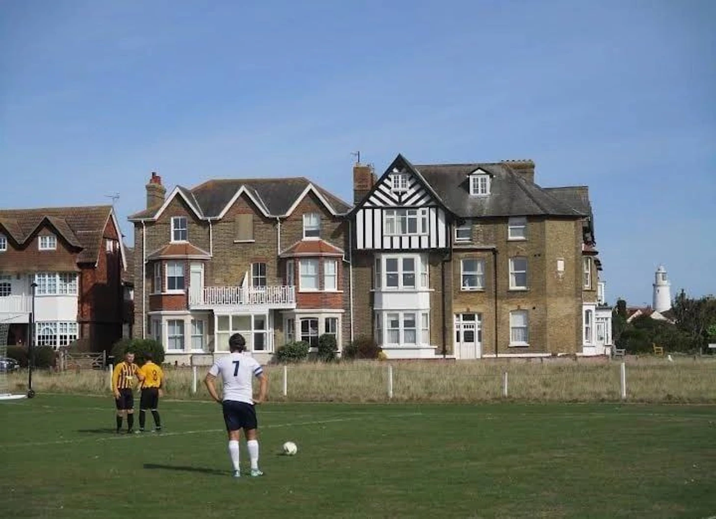 Если клуб имеет свой стадион, историю и болельщиков, то его можно назвать «полноценным». Таков «Саутволд Таун», и он играет аж в 17-м дивизионе! А в прошлом сезоне играл вообще в 18-м. Саутволд — городок на восточном побережье Англии, малюсенький на 1000 жителей. Уединенный, но не настолько отдаленный от Лондона, он привлекал деятелей науки и культуры. Например, Джорджа Оруэлла. На футбольной карте в 5-10 км ни души, и Таун, основанный в 1895 году, получал внимание. Несмотря на участие в забугорных лигах и абсолютное неучастие в Кубке Англии. Любители стабильно пылили в Первом дивизионе Лиги графства Саффолк и города Ипсвич, что 12-й дивизион (высший в их истории), но добровольно упали в систему Лиги города Лоустофт и окрестностей. Похоже, из-за ковида. Некрасиво тут быть не может! С поля, по канонам также крикетного, открывается вид на улицу Годилл-роуд, где стоят архитектурные памятники, включая аккуратный розовый домик. Вносит диссонанс только водонапорная башня.