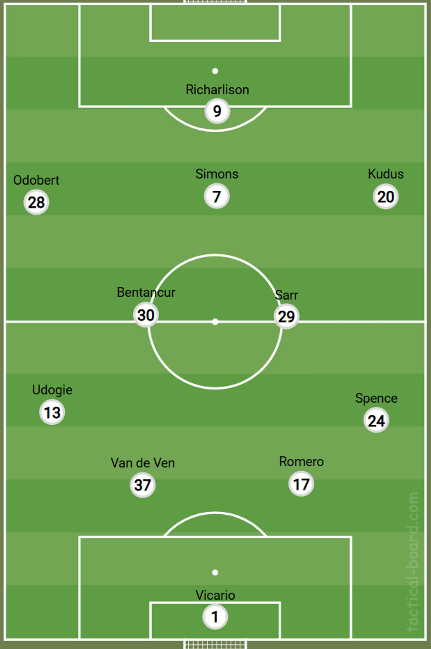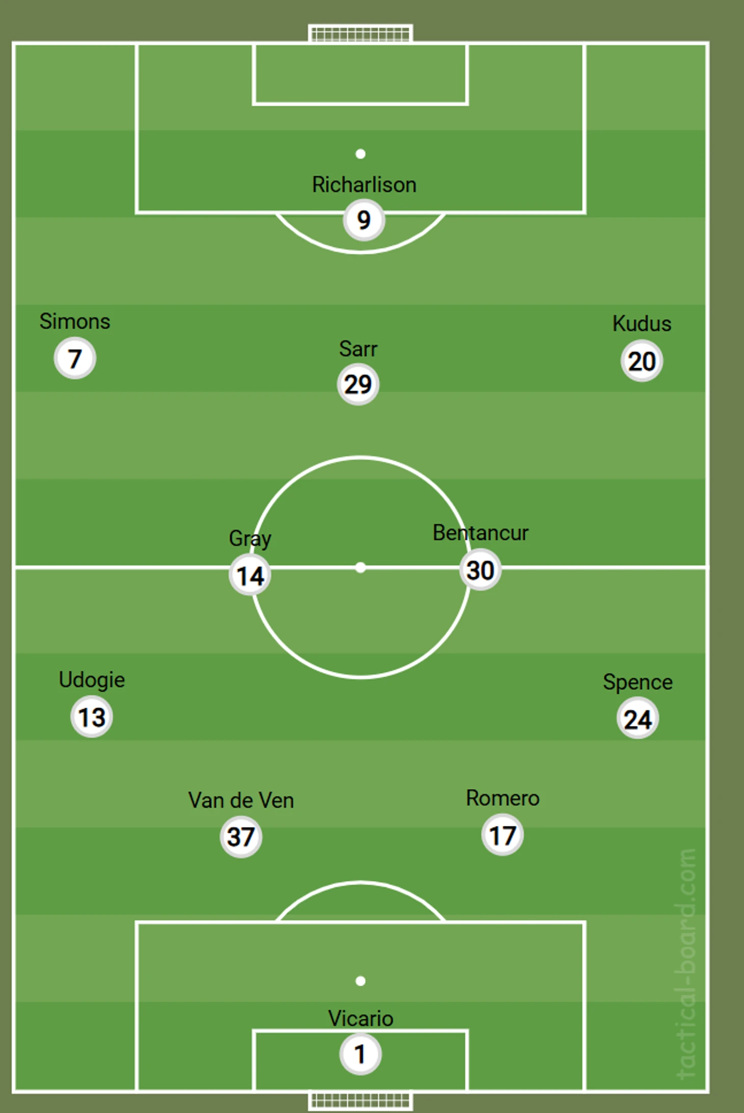 Уже завтра матч с Вест Хэмом, который только что обыграл Ноттингем Форест со счетом 3:0. Из хороших новостей - нет новых травм, Дестени Удоджи будет готов выйти в старте, Хави Симонс в команде. Ожидаю Хави в стартовом составе, главный вопрос - на какой позиции?