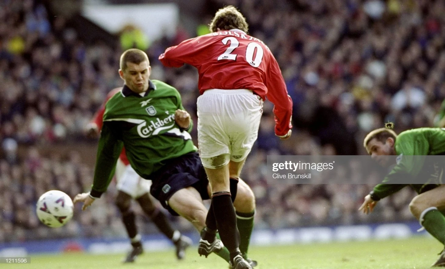 Март 2000-го. Северо-западное дерби (или дерби М-62). Оле-Гуннар Сульшер aka Убийца с лицом младенца, наносит удар по воротам «Ливерпуля».