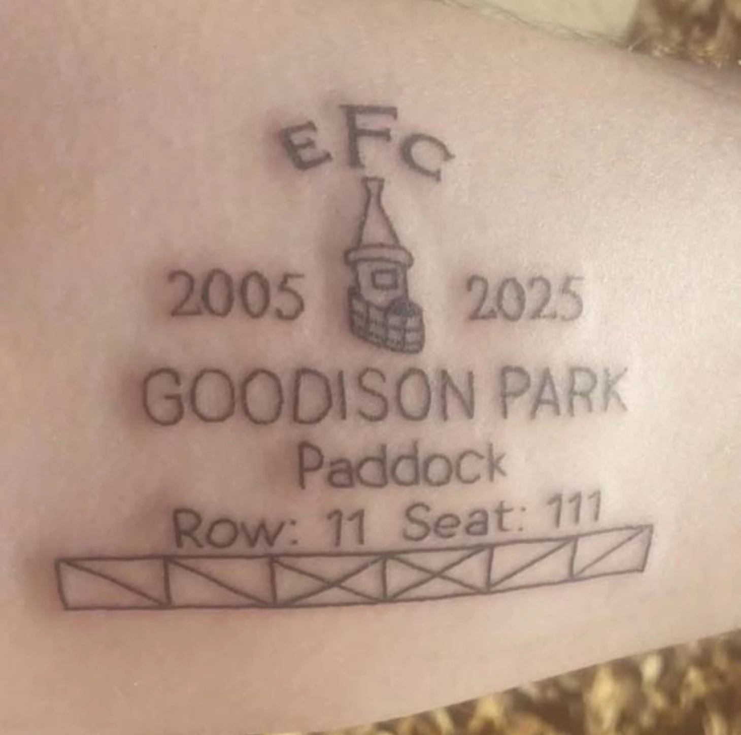 Фанаты хвастались оригинальными татуировками: некоторые набили ряд и номер сиденья, на которое продлевали абонемент десятилетиями.