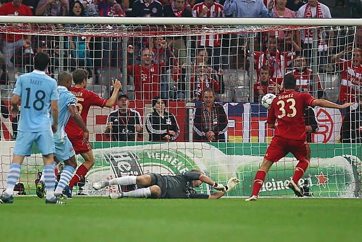 Для начала Рибери, сместившись в центр с левого фланга, пробил по воротам Джо Харта из-за пределов штрафной. Вратарь сборной Англии неудачно отбил мяч прямо перед собой, где тут как тут оказался Томас Мюллер. Харт справился и со вторым ударом. Однако на Марио Гомеса уже рук не хватило. Защитники «Манчестер Сити» лишь провожали взглядом, как их вратарь в одиночку старался предотвратить неминуемое.