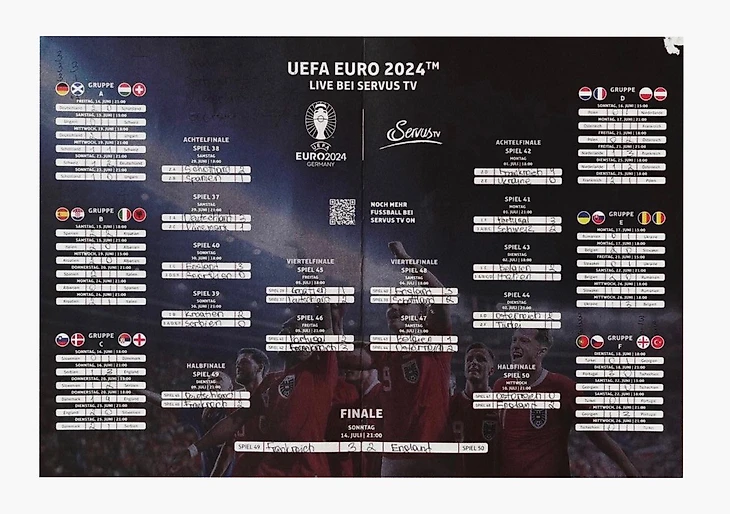 В Австрии перед стартом турнира всем отправляли по почте турнирную сетку для заполнения всех результатов Евро. Я тоже заполнил на перспективу. Казалось, что в финале должны встретиться Франция и Англия (качество исполнителей и прагматизм).