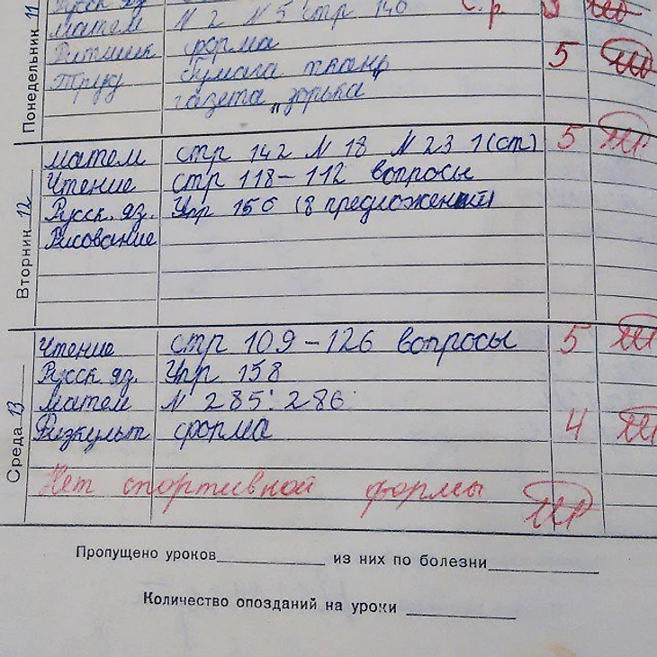 «Нет спортивной формы». Фото из школьного дневника Макса Мирного
