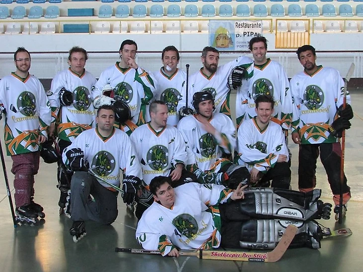 - С тех пор раз в неделю я начал ездить после работы на тренировки в Лиссабон. 300км пробега, и все это ради часа тренировки. Непросто было приспособиться к роликам после коньков. Как оказалось, неимоверно трудно защищать ворота, не имея возможности скользить. Команда называлась "Oeiras Sharks", меня там хорошо поддерживали и я обретал уверенность. Параллельно я смог поступить в Политехнический техникум по специальности "Информационные системы и обслуживание сетей". Думал, что там где-то 90% терминов на английском и мне будет проще. В целом, я не ошибся, но через год обучения возникли разногласия с начальством на фабрике, и меня "под шумок" попросили написать "по собственному". Обучение в Политехе пришлось заморозить, потому что обучение недешевое, а денег было не так много. Найти работу в маленьком городе очень сложно, и я решил переехать в Лиссабон, поближе к хоккею. Меня приютил у себя на полгода один из друзей, живущих в Лиссабоне. Хоккей все это время был и развивался, товарищеские матчи с другими инлайн-клубами, зимой периодические вылазки на временные ледовые катки, чтобы немного поиграть там. Обычно они совсем небольшие по размеру и борта не выдерживают броска шайбы.