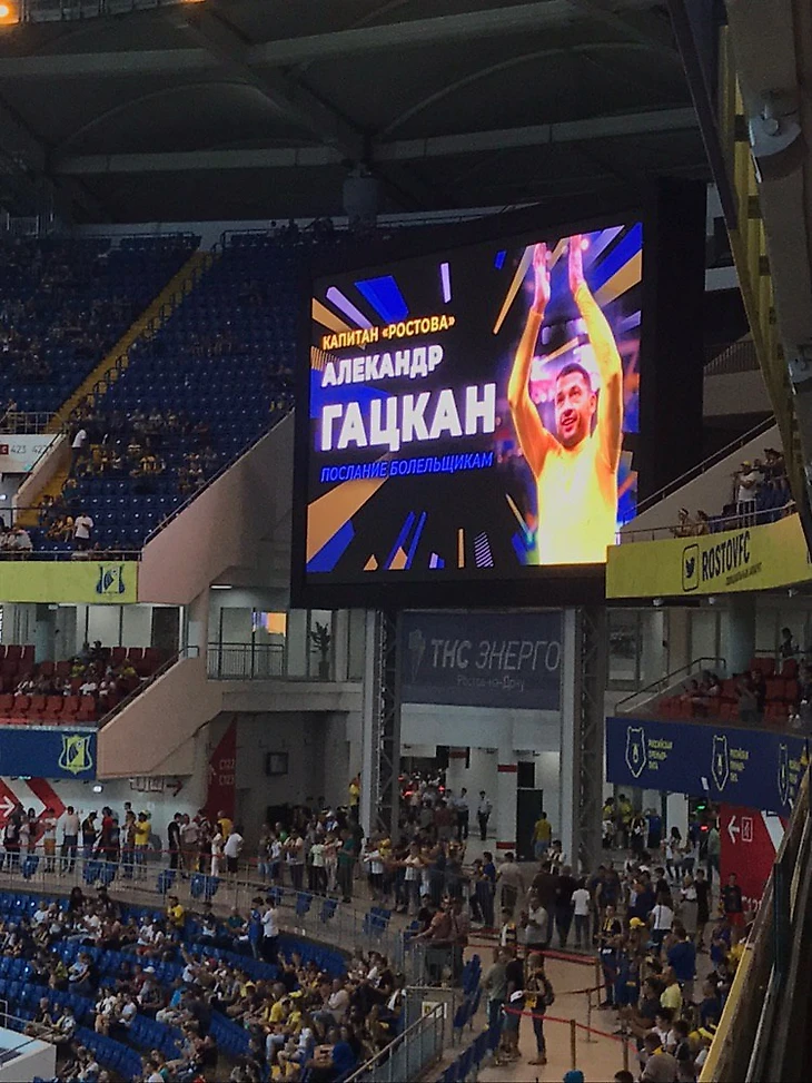 В июле ростовчан огорошили – только-только проводив одну легенду, наступил момент провожать капитана – Александр Гацкан объявил о своем уходе. Да, это было сделано экстренно, очень дергано и за несколько дней до игры со Спартаком – вариантов подготовиться к достойным проводам было мало. Но может ли хоть немного уважающий себя пиар-отдел хотя бы снять нормальное видео на память? Или хотя бы написать имя многолетнего капитана на табло без ошибки? А Александр превратился в Алекандра. Ну а итоговый отчет снимал вообще не пиар-отдел, а Семьдесят Седьмой, многим известный. Если бы не он - скорее всего, смотрели бы мы Матч ТВ.