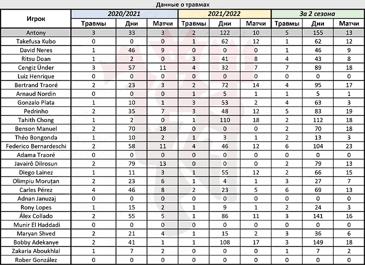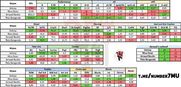 Особенно интересно трактуется статистика, когда сравнивается игрок из Ла Лиги, 3 игрока из АПЛ и игрок из Эредивизии, еще и из доминирующего клуба. Конечно у него будет статистика лучше. Но когда считаете голы и передачи, то надо учитывать, что аякс в одном сезоне с Антони забил 98 мячей в чемпионате, а в другом 102. Это то, что нужно знать об уровне оппозиции. И даже при такой оппозиции вингер не осилил 10 голов за сезон