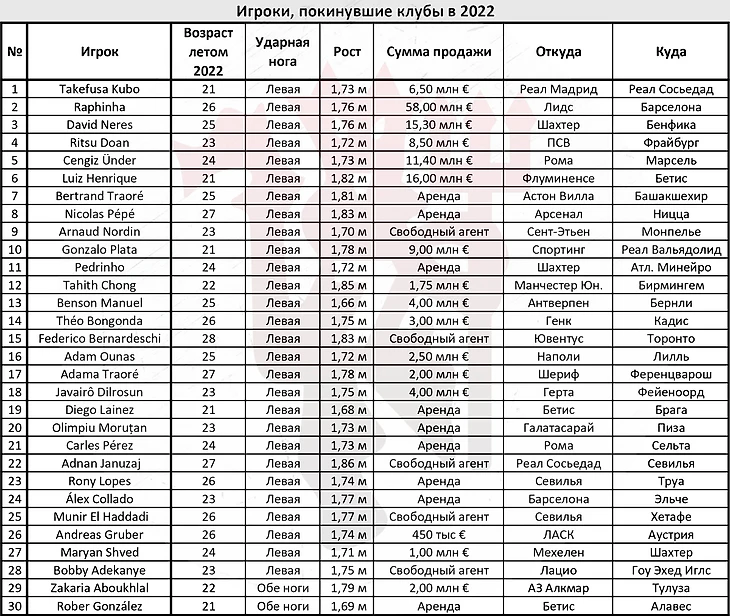 Со второй таблицей мы вступаем на территорию СМИ и в некоторую серую зону, поскольку можем ориентироваться только на какие-то заявления игроков, агентов и клубов, инсайды журналистов и прочие слухи. А по некоторым игрокам и вовсе не было никакой информации.