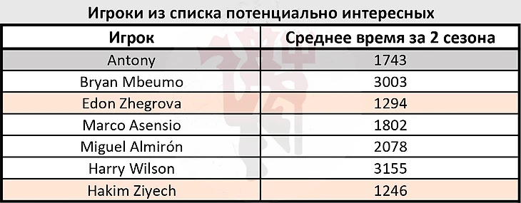Далее идет выборка из самых дорогих игроков по оценке Transfermarkt, потенциально интересных для перехода в МЮ. Такие кандидаты, как Фоден, Сака и Салах здесь отсутствуют в виду отсутствия смысла.