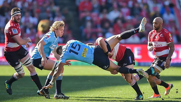 Визиты в Йоханнесбург всегда трудны, в особенности, когда тебе после напряженного четвертьфинала приходится лететь через океан на высокогорье в логово лучше подготовленного, да к тому же подкрепленного возвращением многих лидеров в строй, соперника. Шансы Уоротас изначально выглядели достаточно скромными, а итоговый успех - маловероятным и зависящим от слишком большого количества факторов. Но в чем их, в отличие от Харрикейнс, не упрекнуть - так это в стремлении самим решать судьбу полуфинала, а не осторожничать и полагаться на ошибки соперника. С первых минут австралийцы прибрали мяч к рукам и до предела взвинтили темп, фактически сделав максимальную ставку на дебют. И преуспели в своем авантюризме: Израэл Фолау выбил мяч в прыжке из рук Кутзее и положил начало голевой комбинации на 4-й минуте, а затем сам завершал усилия партнеров, в особенности мощно протаранившего свой фланг Такеле Найяраворо. 0-14 к 10-й минуте поединка заставили южноафриканцев понервничать: как сидевших на трибунах фанатов, так и игроков на поле, допустивших еще ряд невынужденных ошибок и едва не подаривших Тахс шанс остро контратаковать со своей половины. К середине тайма Львы окончательно забрали инициативу себе и явно продемонстрировали решимость и намерение поскорее отыграться полным отказом пробивать штрафные по воротам, даже из достаточно комфортных позиций. Попытки Квагга Смита и Афиве Дианти хоть и стали проявлением, скорее, индивидуального мастерства, нежели командной работы, также вскрыли и очевидные проблемы в обороне сиднейцев: энергичность их действий существенно снизилась, чему виной и вернувшаяся Лайонс уверенность и, вероятно, начинавшая сказываться высота.