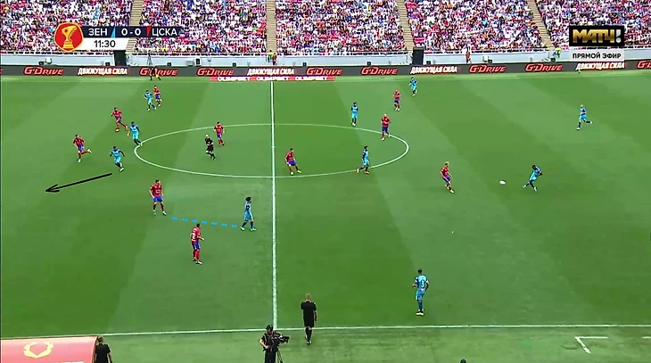 ЦСКА с первых минут отдал мяч и встречал соперника в среднем блоке. При розыгрышах «Зенита» Мухин и Чалов прессинговали центральных защитников, Заболотный опускался ниже и закрывал Барриоса, а Мендес играл по Ду Кейросу.