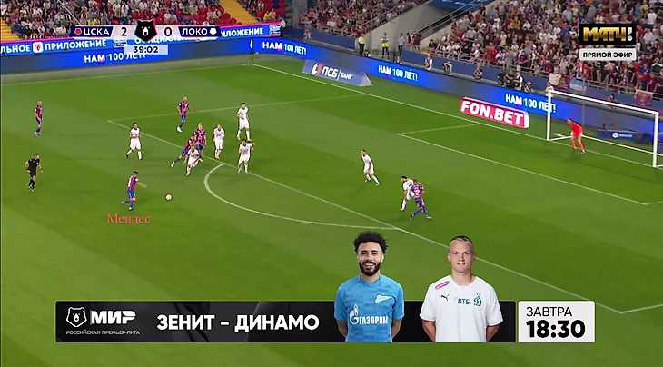 Чалов отдал в свободную зону, где Мендес оказался один и смог пробить.