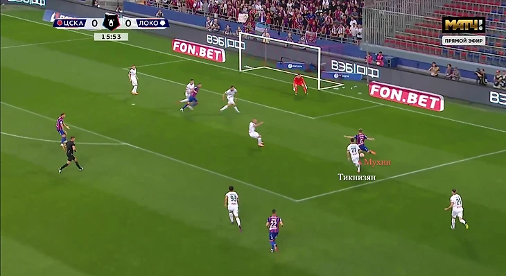 В этой атаке Чалов и Мухин шли на подбор, а Заболотный смог сделать скидку на Максима.