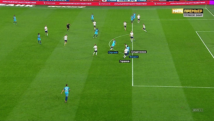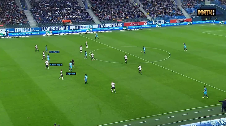 И тут Семак использовал нетипичный для своей команды план. «Зенит» отказался от взаимодействий на флангах и перегружал середину.