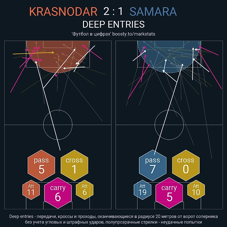 Такая аномалия случается с «Крыльями» не первый раз. Больше попыток с помощью навесов было против «Динамо» (отыгрывались с 1:3 и зажали на чужой трети во втором тайме), «Локо» (так и не забили второй, а в концовке упустили победу), «Рубина» (проигрывали с 41 минуты) и «Пари НН». Но таким же ужасным по реализации этих кроссов был только матч в Нижнем Новгороде.