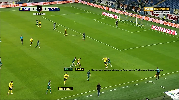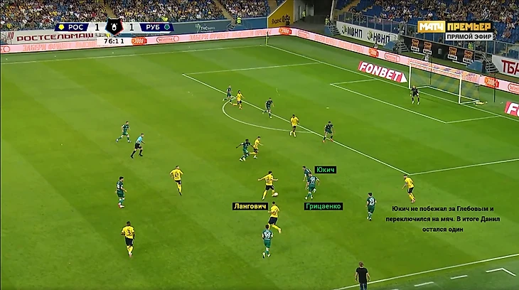 Во втором тайме гол не был следствием каких-то изменений в игре и «Ростов» продолжал вскрывать соперника. Лучше всего всё ещё получался элемент с освобождением зоны крайнего центрального защитника и вбеганием из глубины.