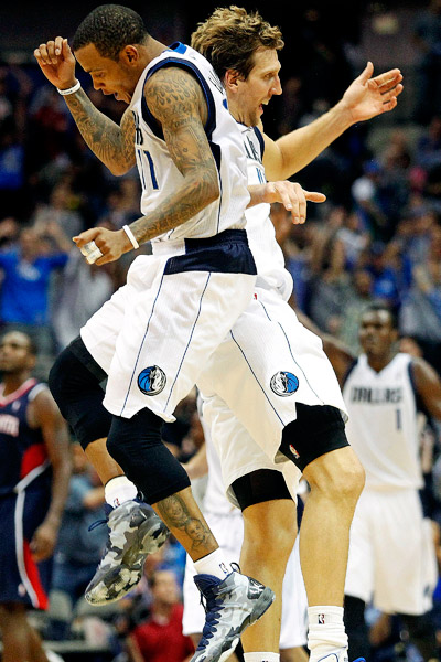 За обращение защитника ответственен Дирк "Пулеметный" Новицки - известно, что оба игрока довольно часто общаются за пределами площадки. Да и Шон Мэрион был недалеко, а вот приветливо машет рукой Карлайл. В кое-то веки у игрока были достойные менторы - ну не Карри же было заниматься педагогикой.