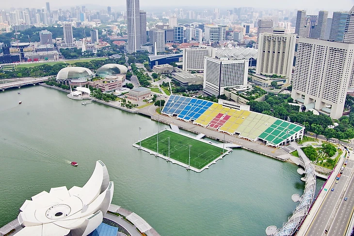 Помните, как в детстве приходилось доставать из-за соседского забора футбольный мяч, ненароком туда залетевший? Либо вытаскивать круглую сферу из-под днища автомобиля? Нечто похожее является отличительной чертой стадиона "Марина Бэй" в Сингапуре.