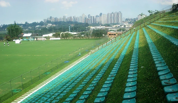 Трибуны арены располагаются на склоне горы. Только представьте - на землю, засеянную прекрасным зелёным газоном поставили зрительские кресла. Так ещё и футбол смотреть можно. Красота, да и только!