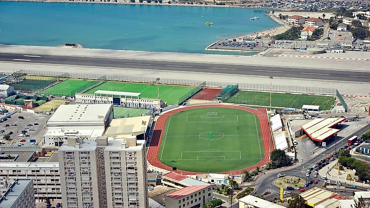В карликовом государстве Гибралтар напряжёнка со свободным местом. Это сразу бросается в глаза. Затронула эта беда и футбольную жизнь государства. В частности, 5-тысячная арена, носящая название "Виктория" расположена весьма странным образом.
