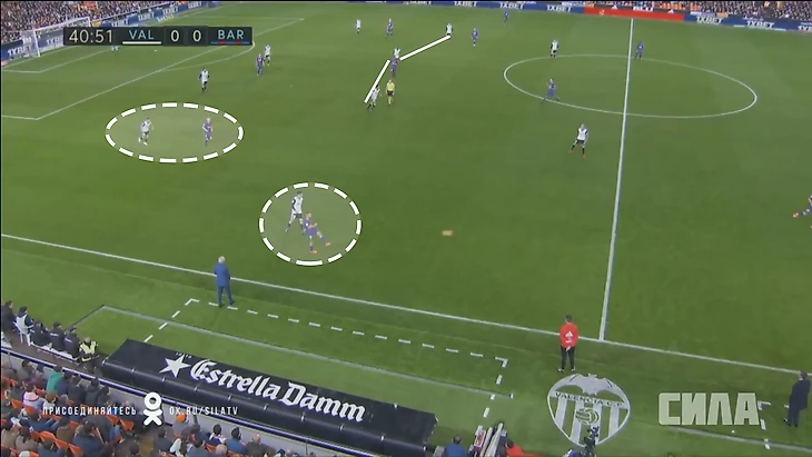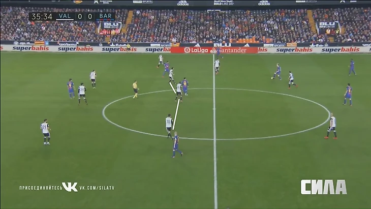 «Валенсия» очень много бегает. Три полузащитника в эпизодах выше контролируют зону, которую все команды обычно закрывают четверкой. Чтобы такой стиль работал, игроки должны быть идеально готовы физически.