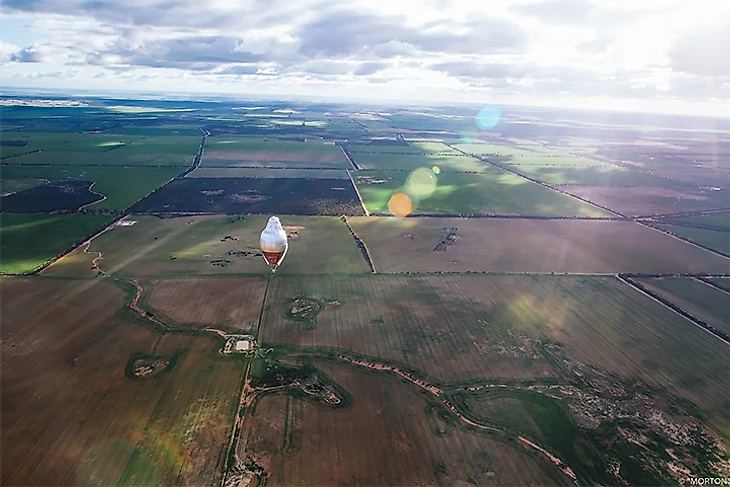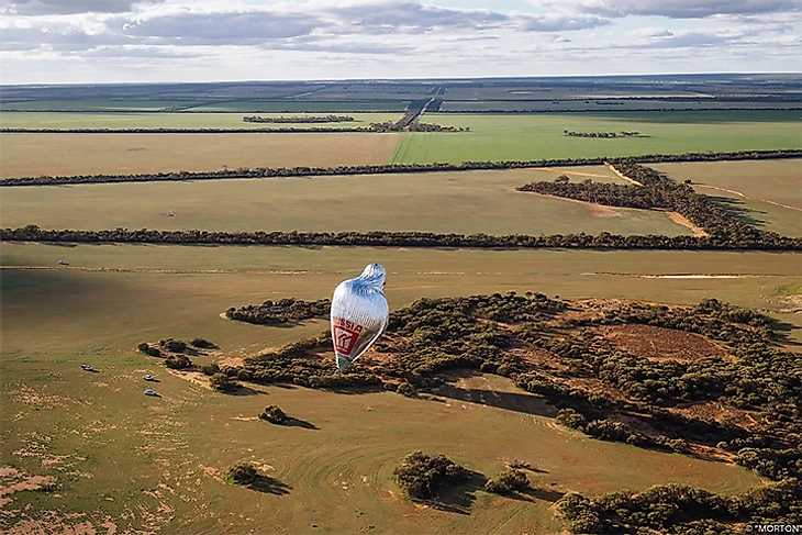 Когда шар начал заходить на посадку, его заметили местные фермеры. Они мчатся по полю и буквально вручную останавливают шар.