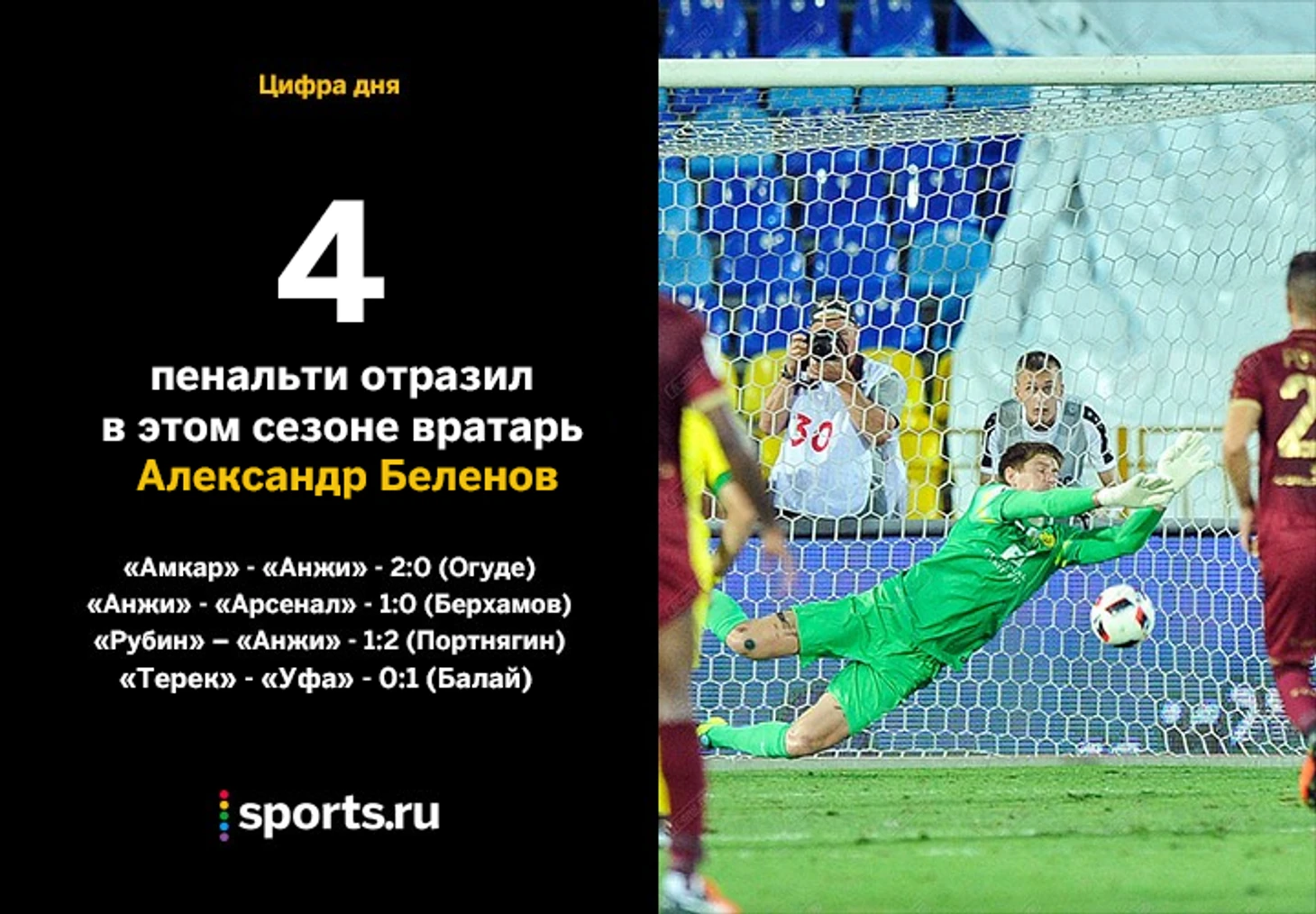 Голкипер Александр Беленов этой зимой перешел из «Анжи» в «Уфу» и в первом же матче за новую команду помог ей обыграть «Терек» в Грозном. На 56-й минуте вратарь отбил пенальти в исполнении Бекима Балая – в рекордный, 4-й раз для этого сезона. До этого Беленов трижды выручал «Анжи» при ударах с 11-метровой отметки.