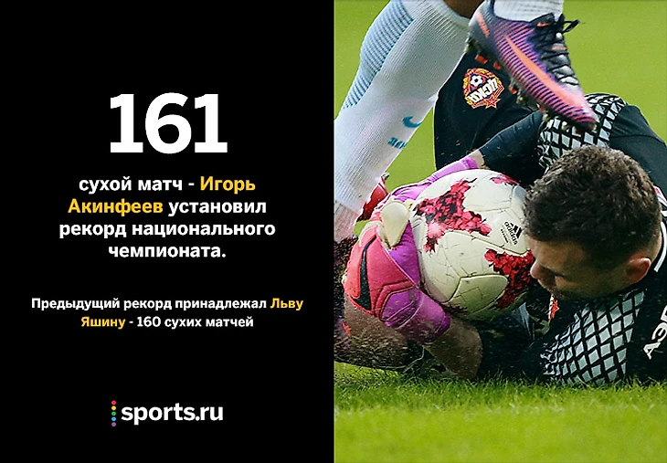 Вратарь ЦСКА Игорь Акинфеев, сыграв на ноль в матче с «Томью», установил новый рекорд для национального чемпионата. Голкипер армейцев отыграл 161 сухой матч (из 358 в чемпионате России). Прежний рекорд принадлежал вратарю «Динамо» Льву Яшину: 160 сухих матчей (из 326 в чемпионате СССР).