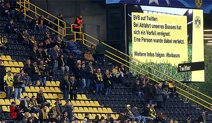 Около автобуса дортмундской «Боруссии» произошло три взрыва, когда команда ехала на стадион «Сигнал Идуна Парк».
