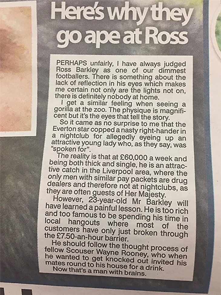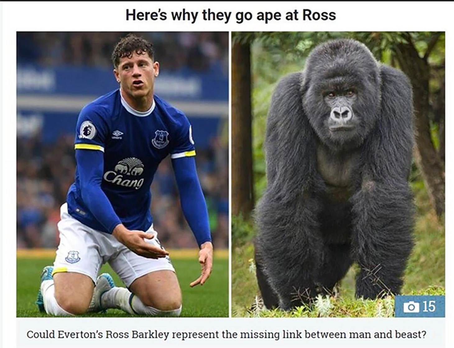 К скандальному тексту The Sun добавила картинку с подписью: «Возможно, Росс Баркли из «Эвертона» – то самое недостающее звено между человеком и животным?».