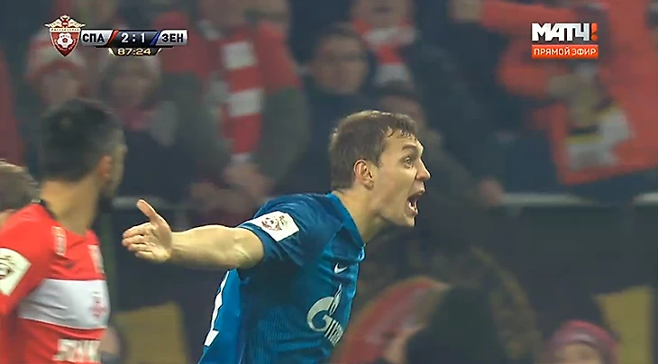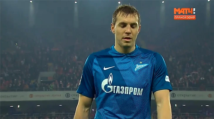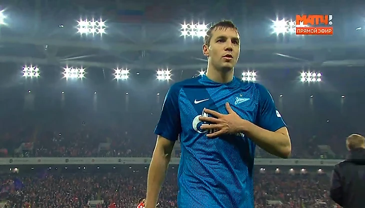 Дзюба после забитого гола. Он забил «Спартаку» в каждом из матчей, которые сыграл за «Зенит» против бывшей команды. Бурно праздновать Дзюба не стал.