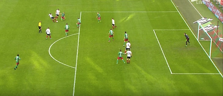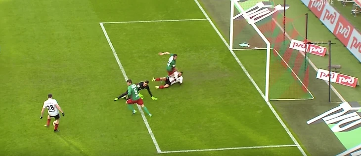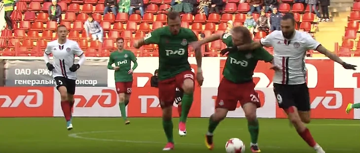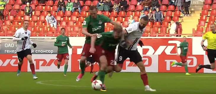 Здесь две проблемы. Во-первых, сначала Бодул ударил по лицу защитника «Локо» Виталия Денисова, и тот не успел вернуться в оборону (Иванов не зафиксировал фол).