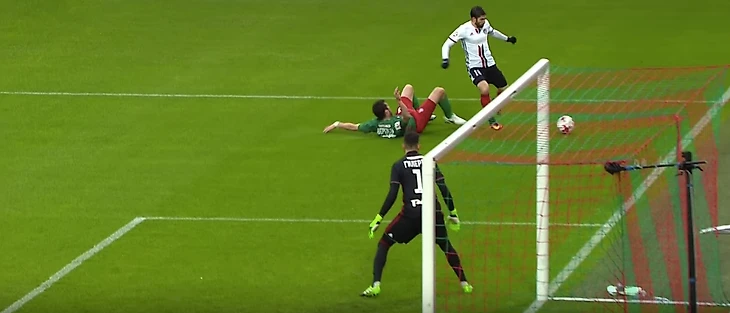 Во-вторых, Бодул находился в офсайде. Что перед первым касанием, что за мгновения до гола: на самом деле мяч после удара Прокофьева попал в голову упавшему Бодулу.