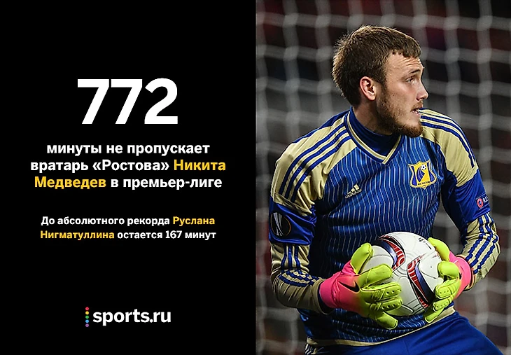 До абсолютного рекорда Руслана Нигматуллина осталось меньше двух матчей. Ближайшие игры «Ростова» – дома с «Уфой» и «Амкаром», Джанаев по-прежнему лечится, так что у Медведева отличные шансы войти в историю на самом старте настоящей карьеры.